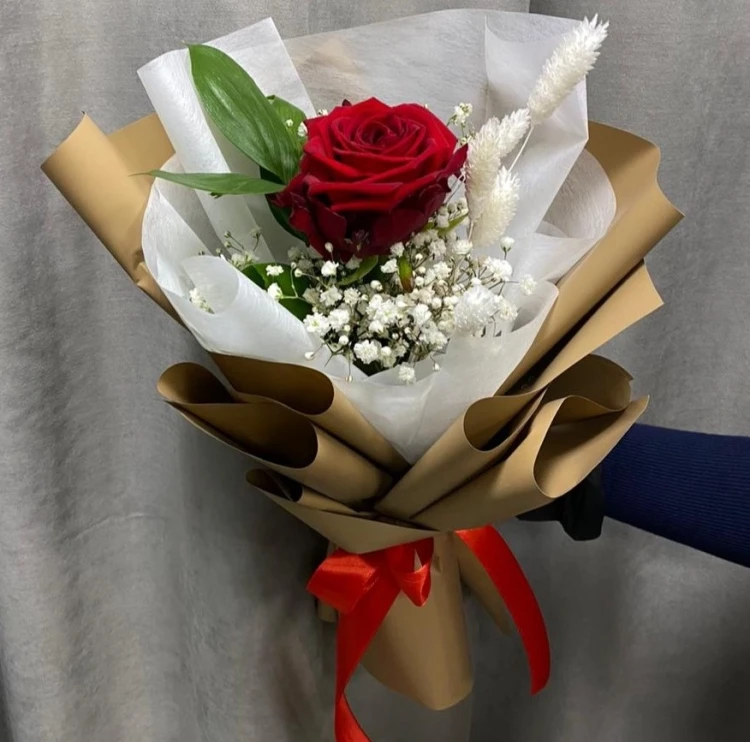 Роза, символ любви и страсти, раскрывается во всей красе в этом букете. Она является воплощением изысканности и роскоши. Гипсофила, в свою очередь, добавляет легкости и воздушности, создавая эффект пышности.