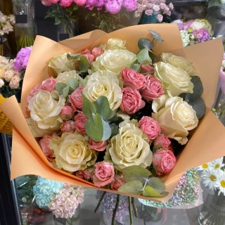Букет "Оранжевый рассвет" создан из кустовых и одноголовых роз, прекрасно подобранных по оттенкам. Каждая роза распускается, словно принося радость и надежду. Зелень, щедро украшающая композицию, подчеркивает ее естественную красоту. Букет представлен в спокойной упаковке, отражающей его нежность и позволяющей насладиться каждым цветком в полной мере. "Оранжевы й рассвет" – это символ прекрасной жизни и нежных чувств, который навсегда останется в памяти получателя.