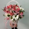 Эта великолепная композиция цветов воплощает в себе нежность и изящество природы. Кустовые розы, ромашковая хризантема и альстромерии создают вместе удивительное сочетание цветов и форм, напоминая о летнем саде в полном расцвете. Каждый цветок, будто живописная картина, раскрывает свою красоту и привлекает внимание своим уникальным очарованием. Яркие альстромерии добавляют ярких красок и радости, ромашковая хризантема приносит нотки домашнего уюта, а кустовые розы символизируют любовь и нежность. Все эти цветы тщательно собраны в элегантной легкой корзинке, подчеркивающей их изысканность и красоту.